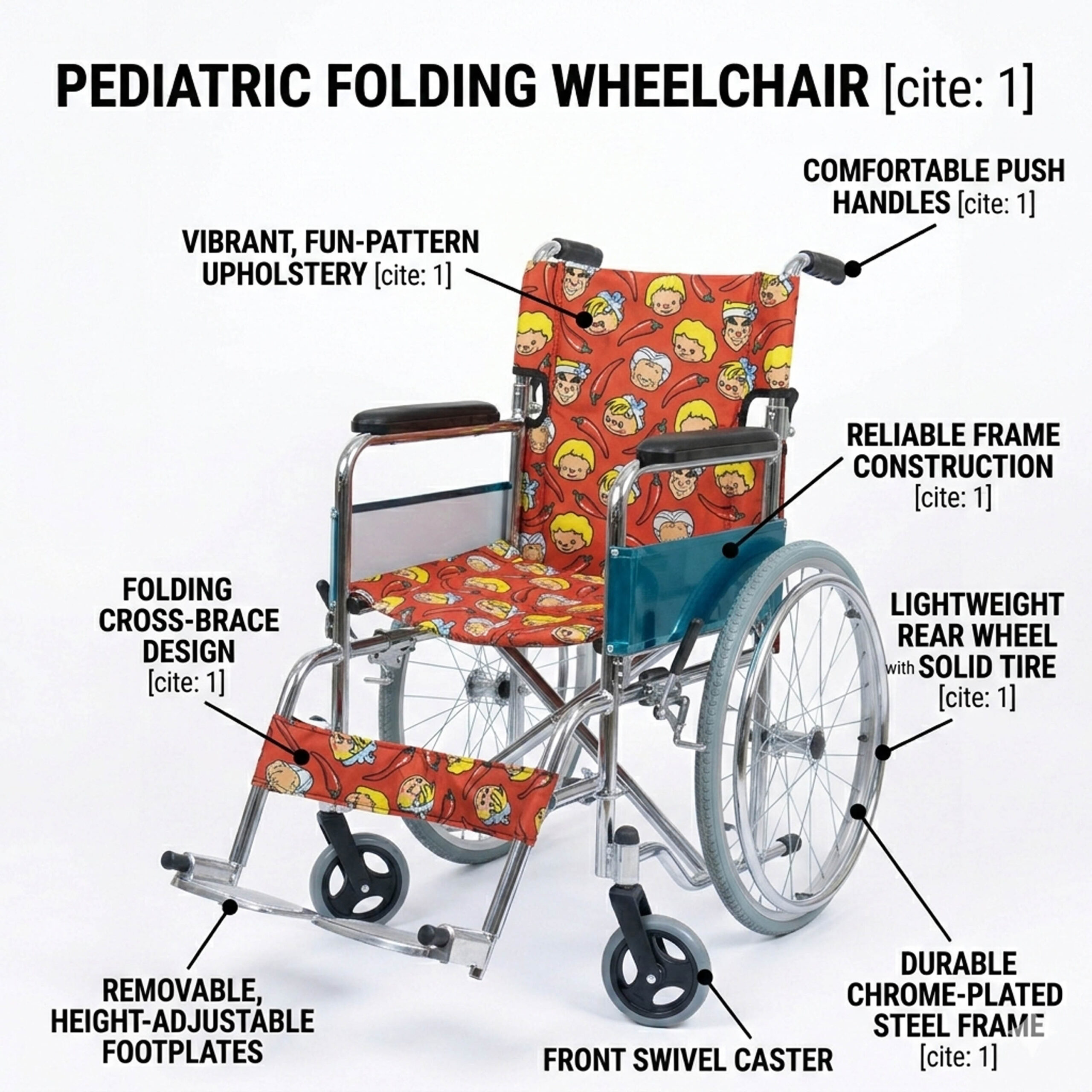 Customizable Comfort: Equipped with removable and height-adjustable footplates to accommodate growing children.